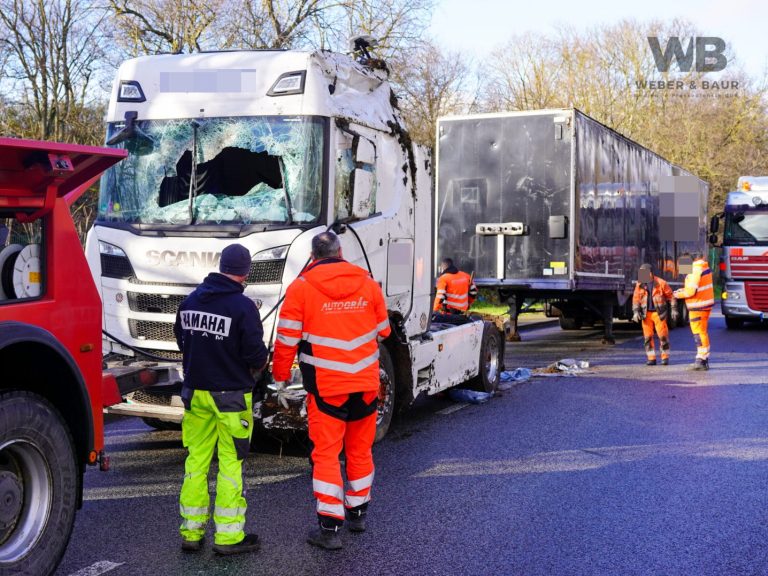 Schwerer Unfall auf A61: Laster kippt, Strom bremst Bergung