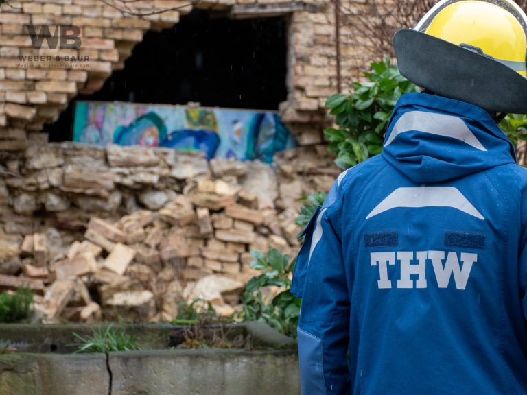 Gebäudeteile eingestürzt: Feuerwehr und THW im Einsatz