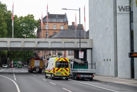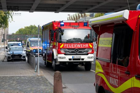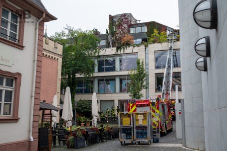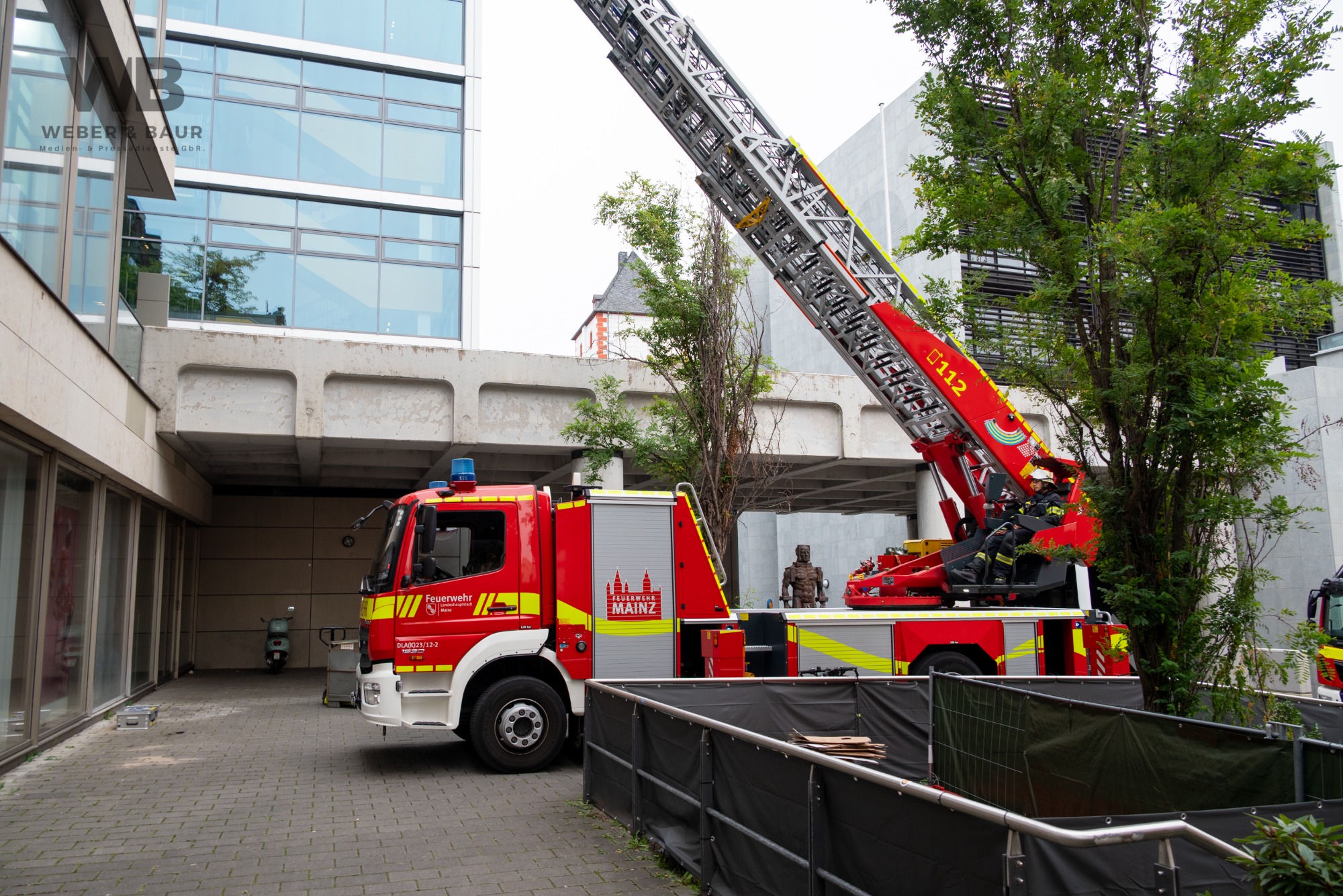Am Samstagmorgen kam es im Mainzer Einkaufszentrum "Am Brand" in der Altstadt zu einem langwierigen Dehnungsfugenbrand in einem Wohn- und Geschäftsgebäude. Gegen 8:30 Uhr wurde die Feuerwehr zu einer starken Rauchentwicklung alarmiert. Der Brand hatte sich unter der Fassade bis in die Dehnungsfuge ausgebreitet und machte aufwendige Löscharbeiten erforderlich. Mehrere Wohnungen wurden vorsorglich evakuiert.