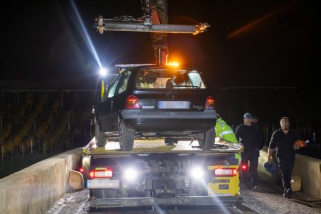 Die Fahrerin konnte sich nach mehreren Versuchen selbst aus dem Fahrzeug befreien. Wie durch ein Wunder blieb die Person dabei nur leicht verletzt. Trotz eindringlicher Empfehlung des Rettungsdienstes lehnte die Fahrerin eine weitere medizinische Untersuchung im Krankenhaus ab.