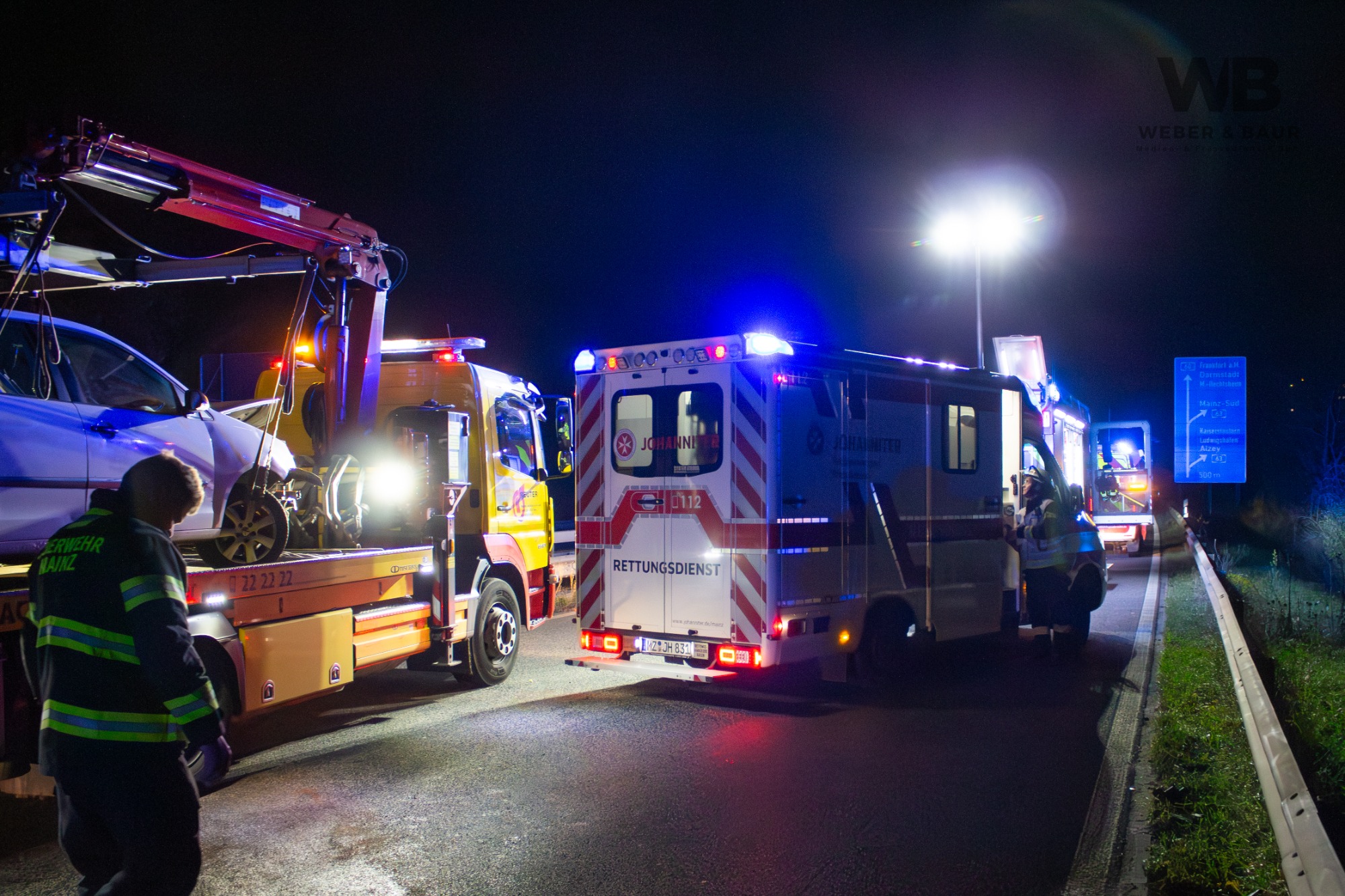 Am Montagabend, dem 3. November 2025, kam es gegen 20:30 Uhr auf der A60 in Höhe der Anschlussstelle Mainz-Lerchenberg zu einem Verkehrsunfall. Ein Pkw prallte aus bislang ungeklärter Ursache gegen die Leitplanke. Beim Eintreffen der ersten Einsatzkräfte von Feuerwehr, Polizei und Rettungsdienst rauchte das Fahrzeug bereits.