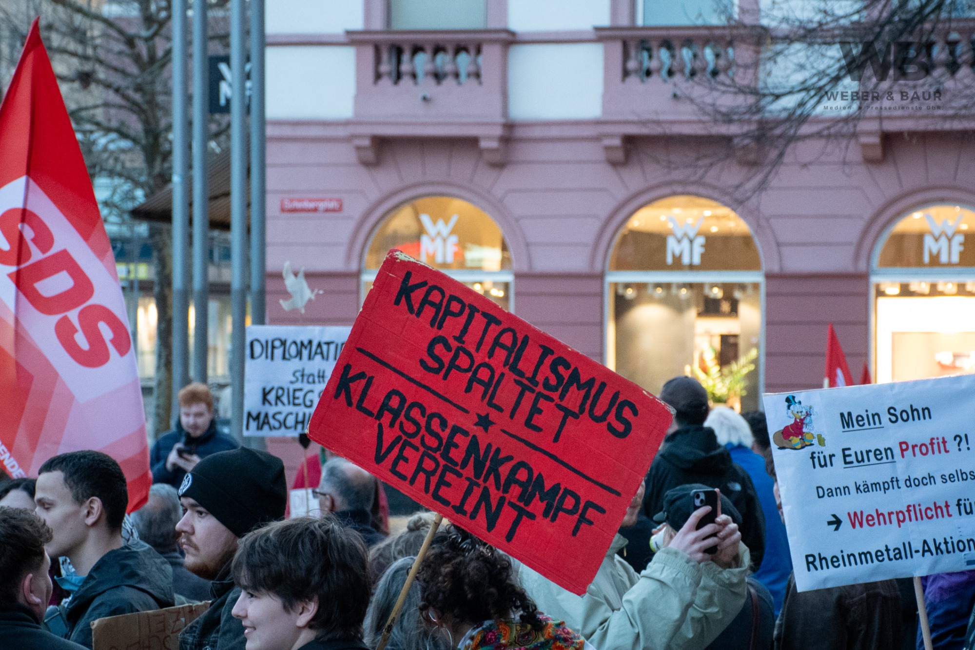 Organisiert wurde der Protest in Mainz von einem Bündnis verschiedener Gruppen, darunter die Sozialistische Deutsche Arbeiterjugend (SDAJ) sowie der sds Mainz. Die Teilnehmenden wenden sich gegen eine mögliche Wiedereinführung verpflichtender Musterungen sowie gegen eine stärkere militärische Ausrichtung und fordern stattdessen mehr Investitionen in Bildung und soziale Infrastruktur.