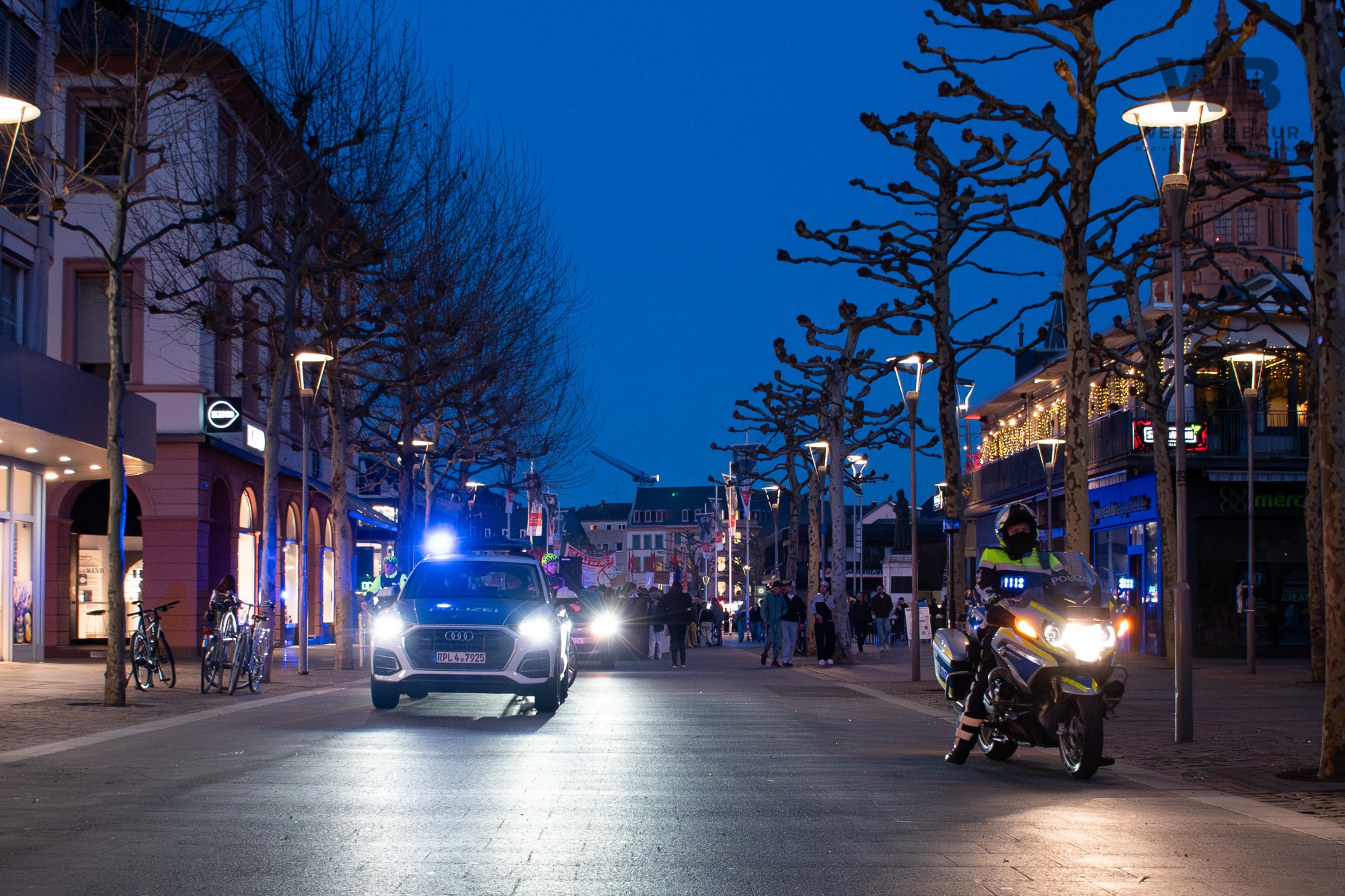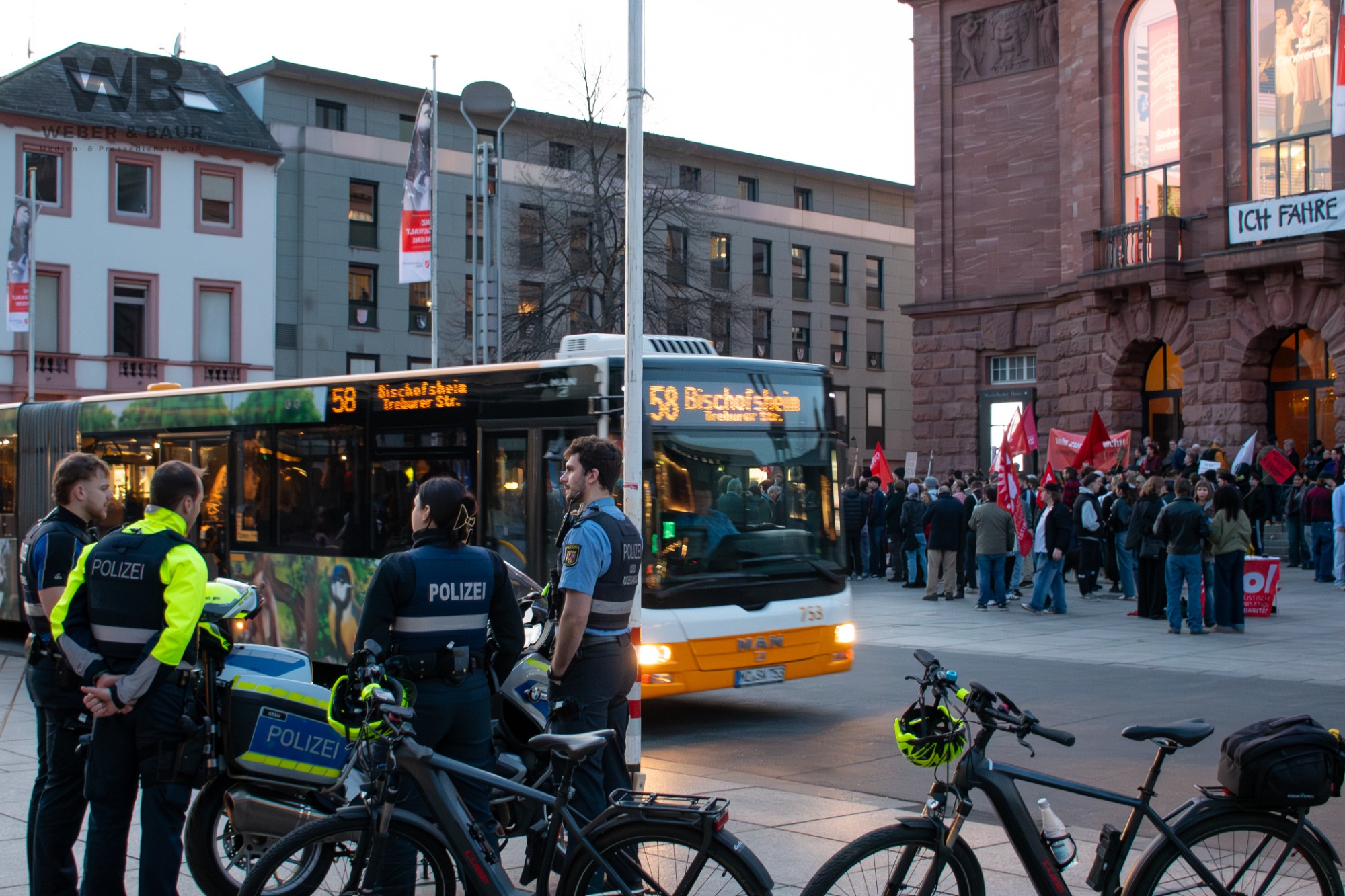 Die Demonstration wurde durch mehrere Kräfte der Polizei begleitet und abgesichert. Neben Streifenwagen waren unter anderem die Polizeifahrradstaffel sowie Polizeimotorräder im Einsatz. Auch Mitarbeitende der Mainzer Mobilität begleiteten den Demonstrationszug und koordinierten die Auswirkungen auf den Straßenbahn- und Busverkehr.
