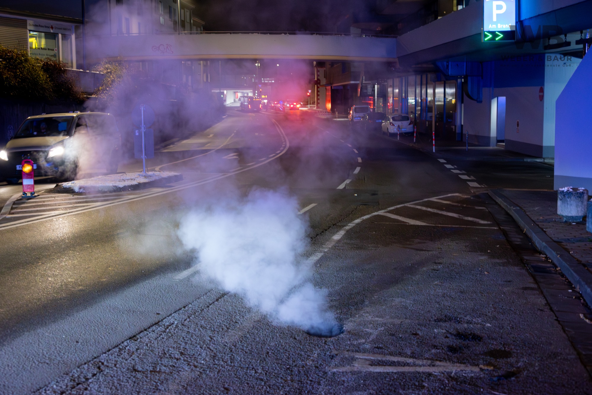 In der Quintinsstraße in der Mainzer Altstadt ist es am Dienstagabend, 06.01.2026, gegen 19:00 Uhr zu einem Austritt von Fernwärme gekommen. Zunächst war von einem Wasserrohrbruch ausgegangen worden. Aufgrund der Rauchentwicklung aus der Fahrbahn rückte die Feuerwehr an und verschaffte sich vor Ort einen Überblick über die Lage. Die Polizei sichert den Bereich derzeit ab.