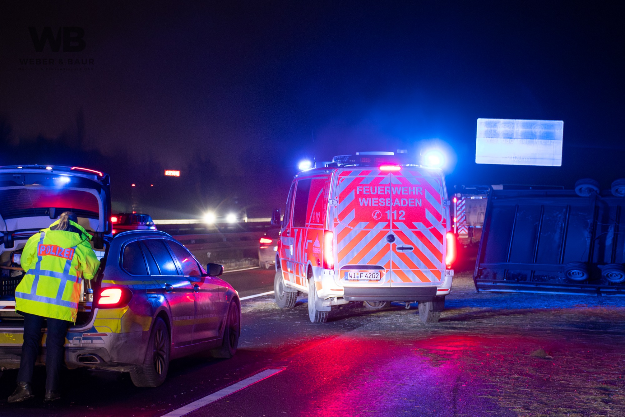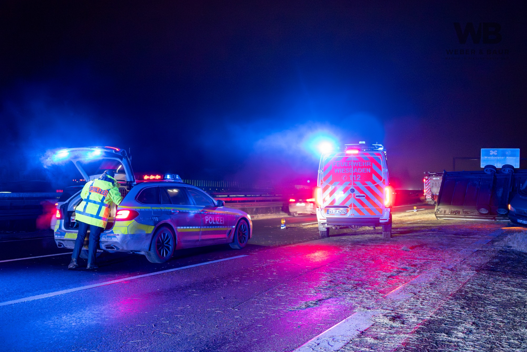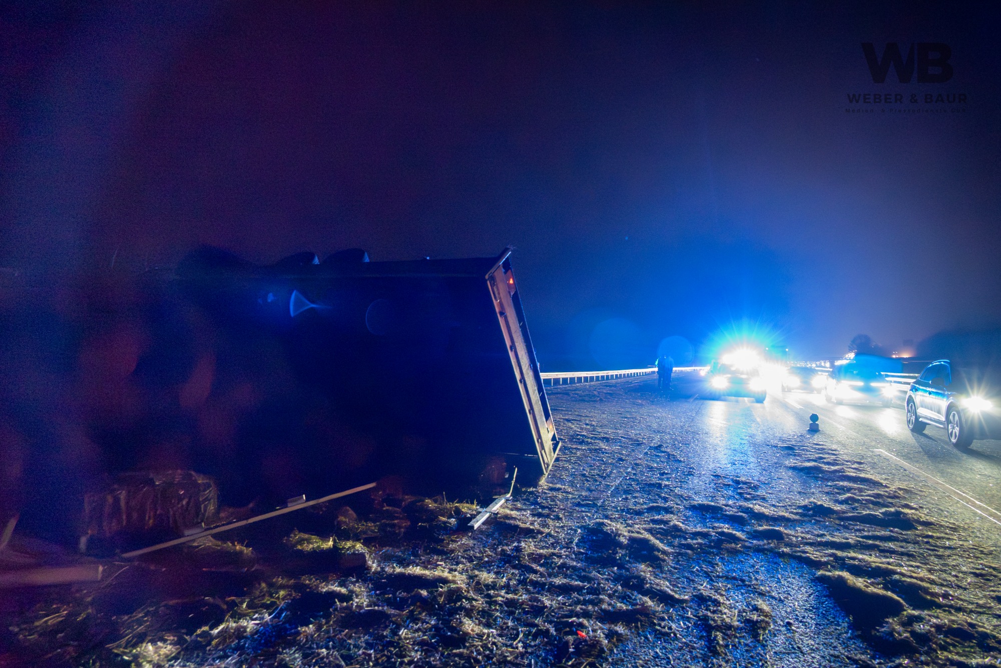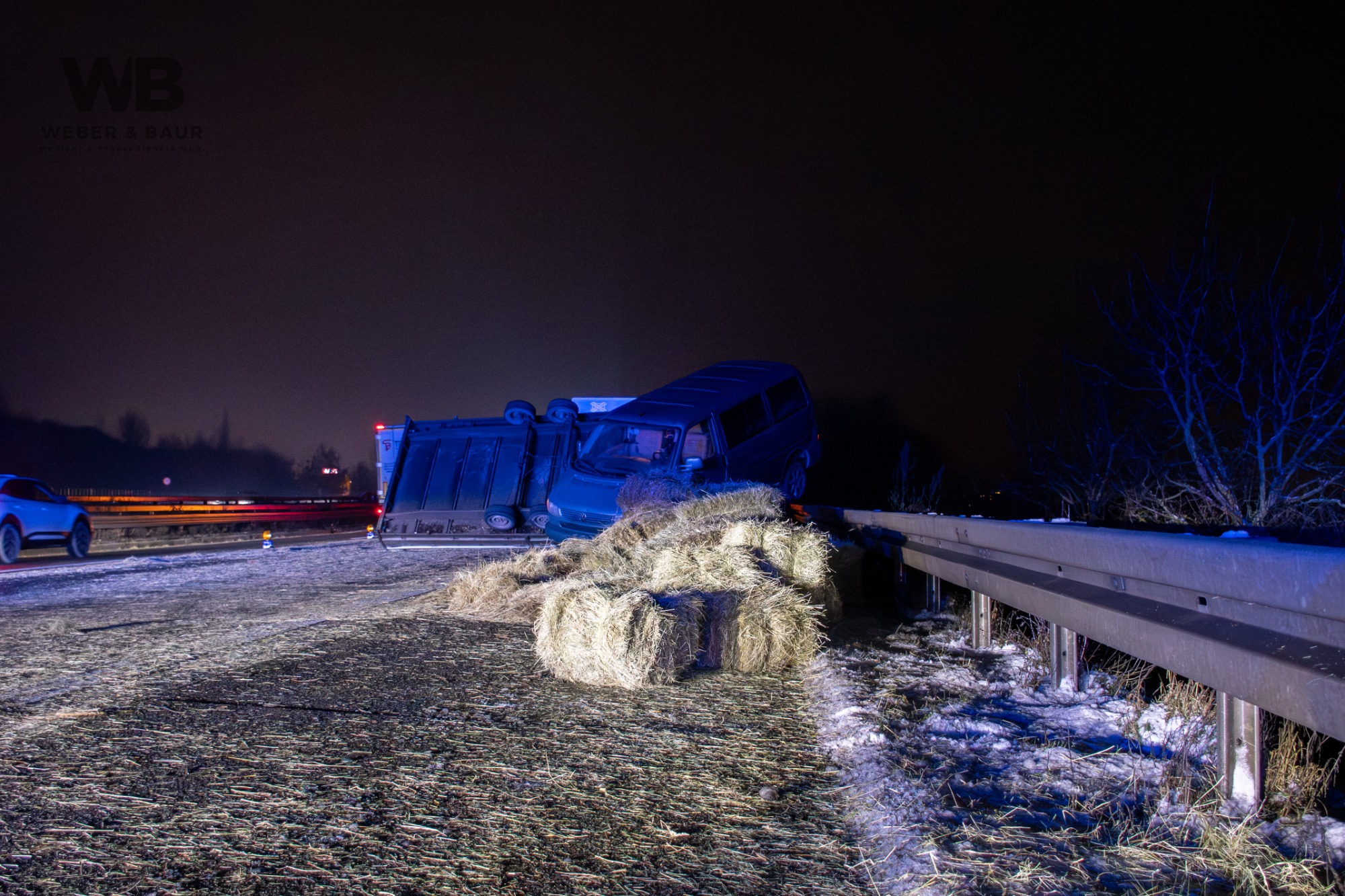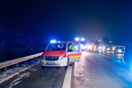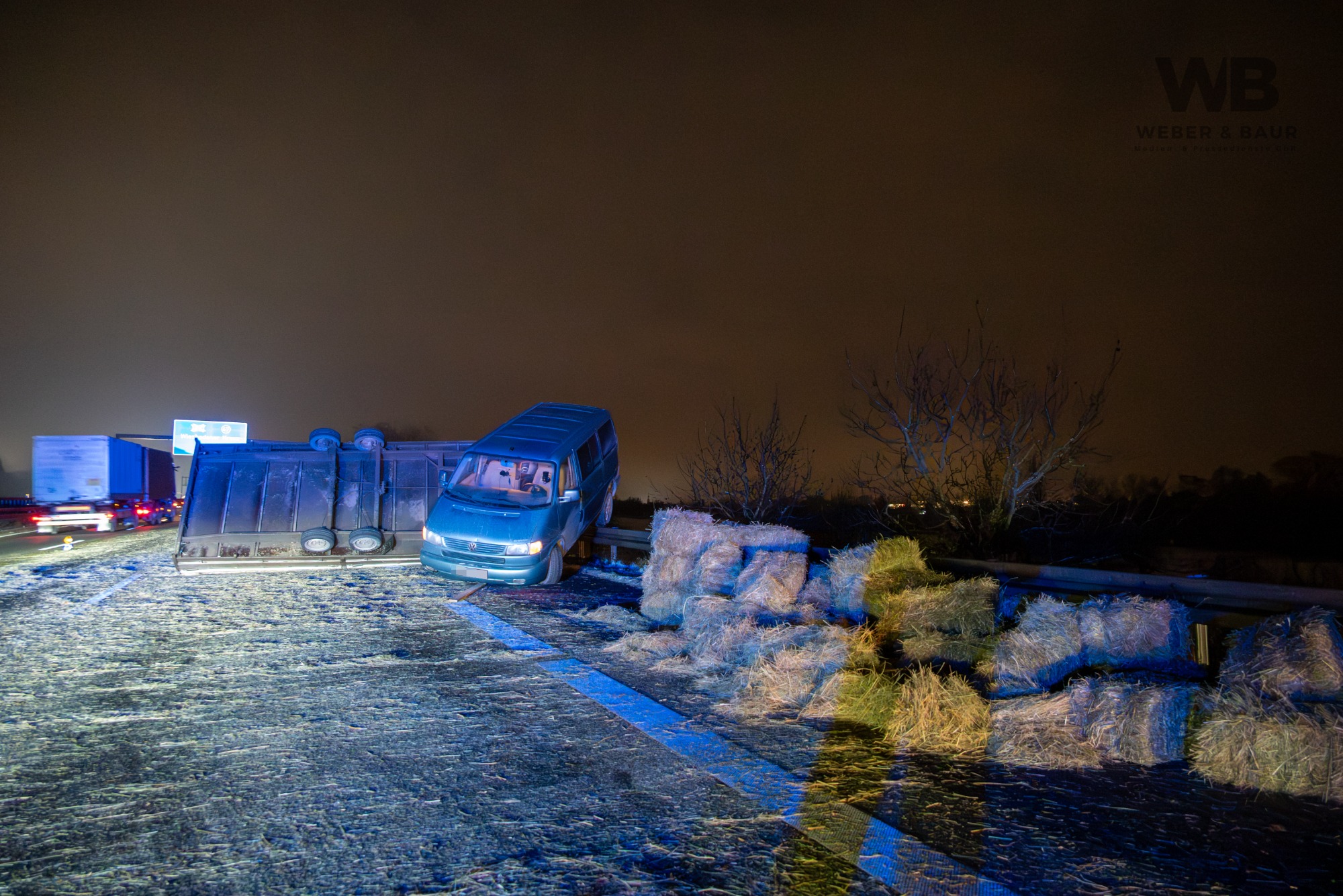 Am Dienstagabend, dem 6. Januar 2026, kam es gegen 20:55 Uhr auf der Autobahn A3 bei Wiesbaden zu einer Vollsperrung infolge eines Verkehrsunfalls. Ein 41-jähriger deutscher Fahrer befuhr mit seinem Pkw und einem mit Strohballen beladenen Anhänger den rechten von drei Fahrstreifen in Fahrtrichtung Süden. Als sich von hinten ein Polizeifahrzeug mit eingeschaltetem Blaulicht näherte, wollte der Fahrer Platz machen und lenkte auf den Standstreifen. Dabei lenkte er jedoch zu stark ein, sodass sich der Anhänger aufschaukelte und schließlich auf die Seite kippte. Die Ladung löste sich und verteilte sich in Form mehrerer Strohballen über die Fahrbahn.