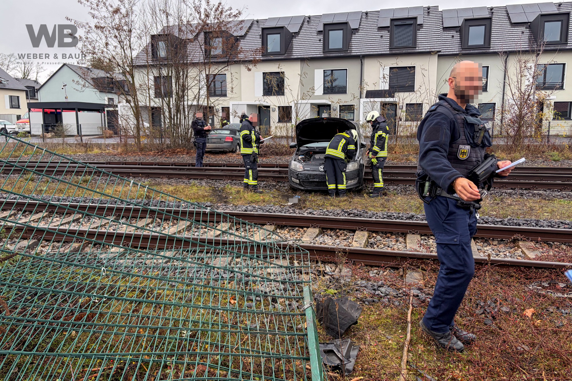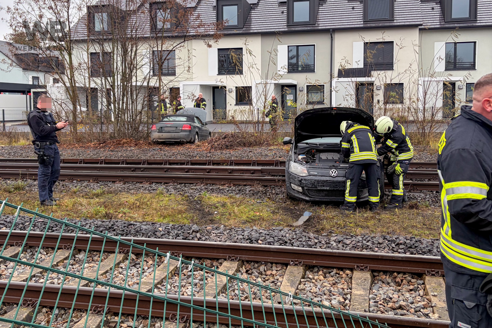 Autofahrer kollidiert mit mehreren Fahrzeugen und gerät auf Bahngleise