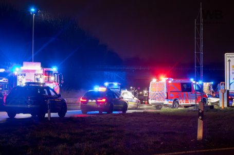 Vor Ort wurden insgesamt vier verletzte Personen durch den Rettungsdienst versorgt und zur weiteren Behandlung in umliegende Krankenhäuser transportiert. Die Feuerwehr sicherte die Unfallstelle ab, stellte den Brandschutz sicher und band ausgetretene Betriebsmittel. Zudem war die Fahrbahn im Bereich der Unfallstelle großflächig verunreinigt.