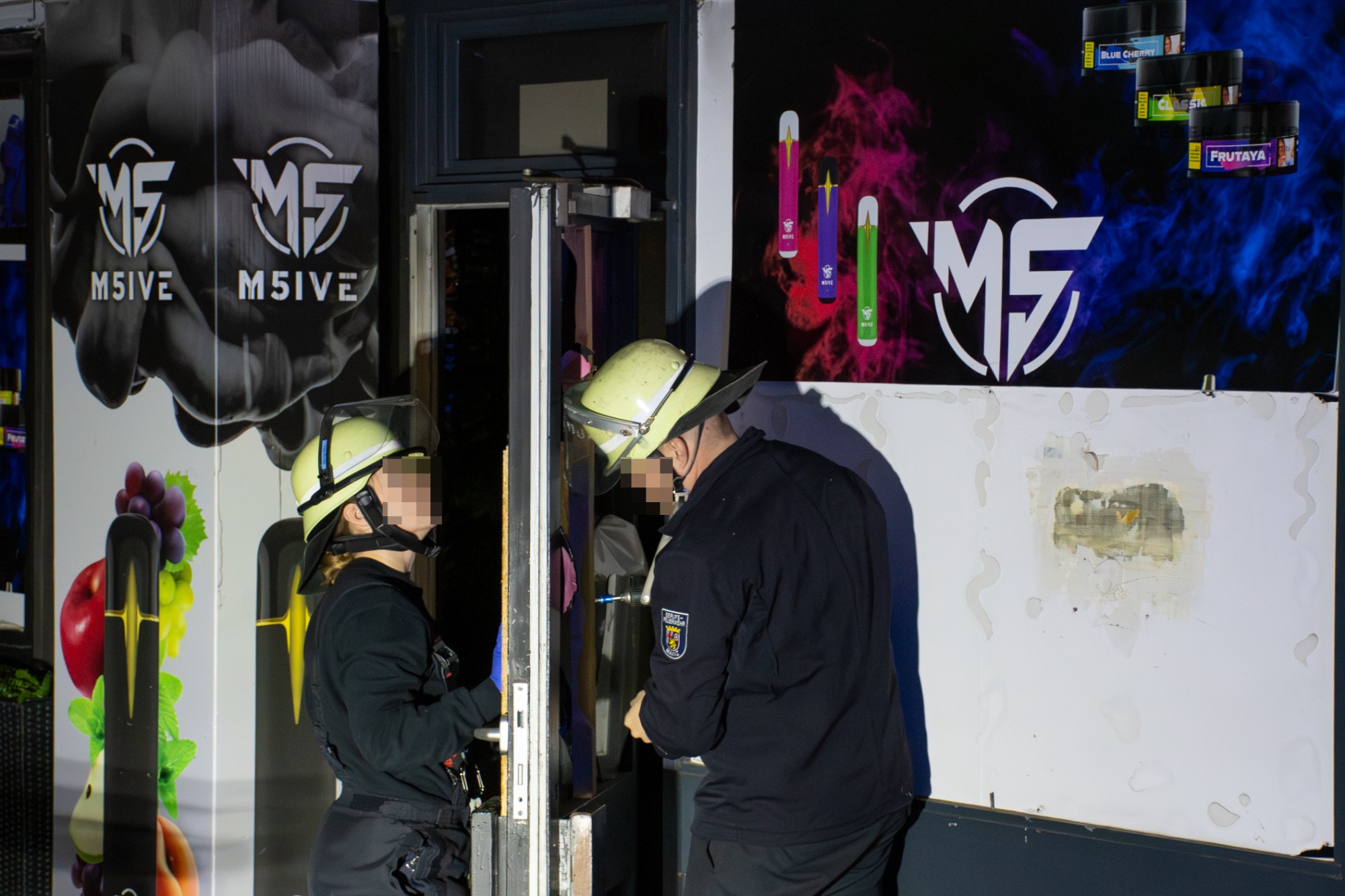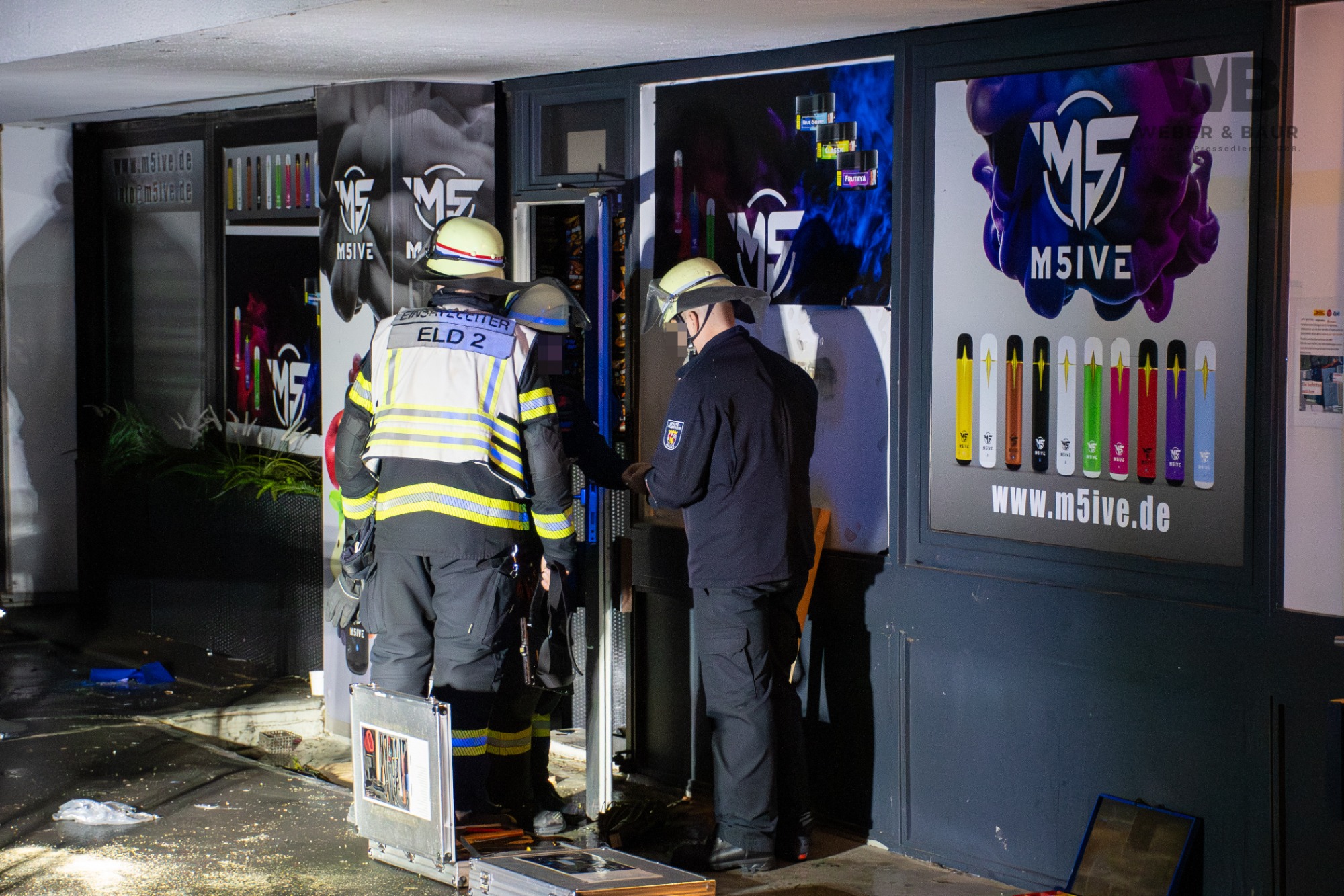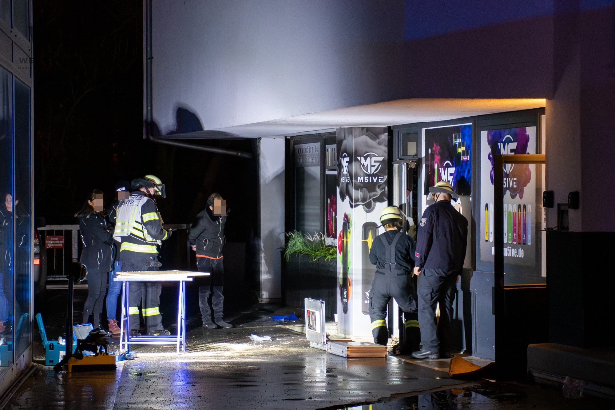 Die Einsatzkräfte konnten die Ursache der Rauchentwicklung schnell auf einen Brand in einem Ladengeschäft im Erdgeschoss des Gebäudes zurückführen. Von dort hatte sich der Rauch in den darüberliegenden Treppenraum der Wohnungen ausgebreitet. Nachdem sich die Feuerwehr Zugang zu dem betroffenen Geschäft verschafft hatte, konnte ein Trupp unter Atemschutz den Brand rasch unter Kontrolle bringen. Parallel dazu wurden die Bewohner durch Einsatzkräfte aus dem Gebäude geführt oder auf eine sichere Terrasse begleitet. Der betroffene Fluchttreppenraum wurde anschließend belüftet.