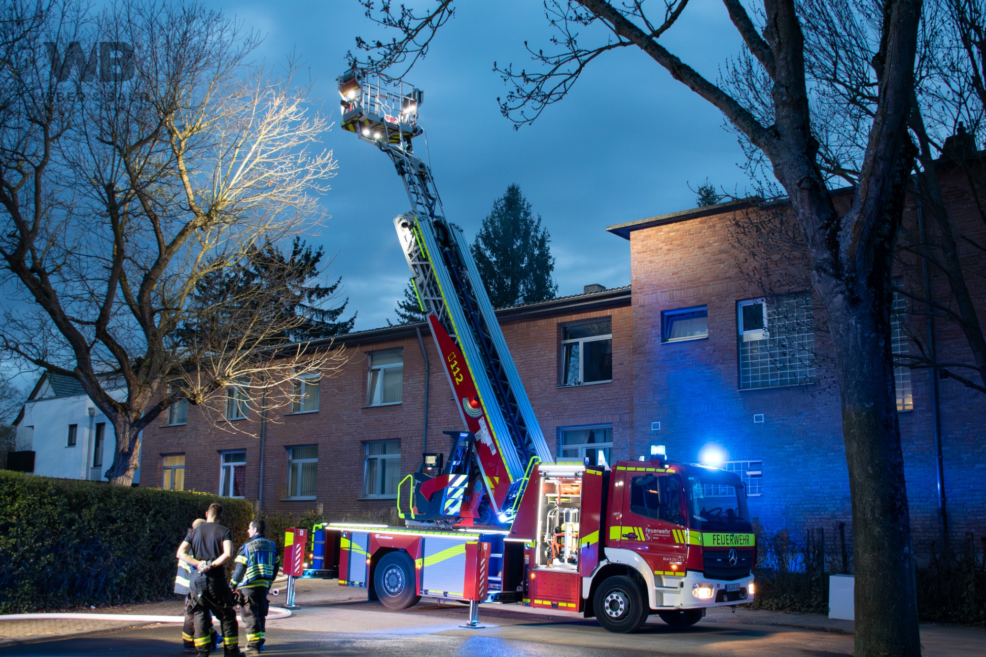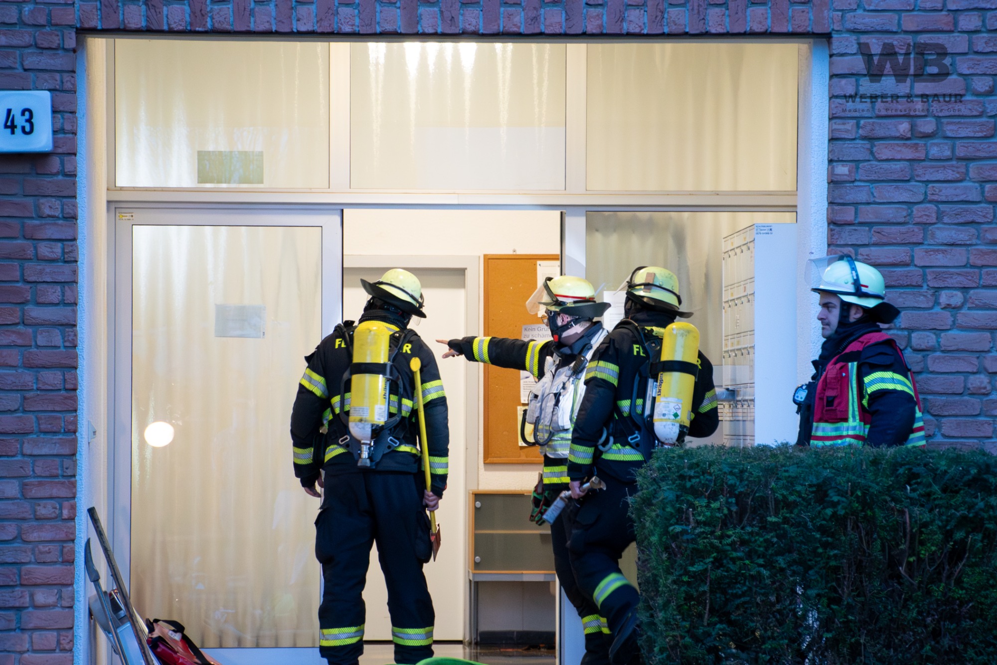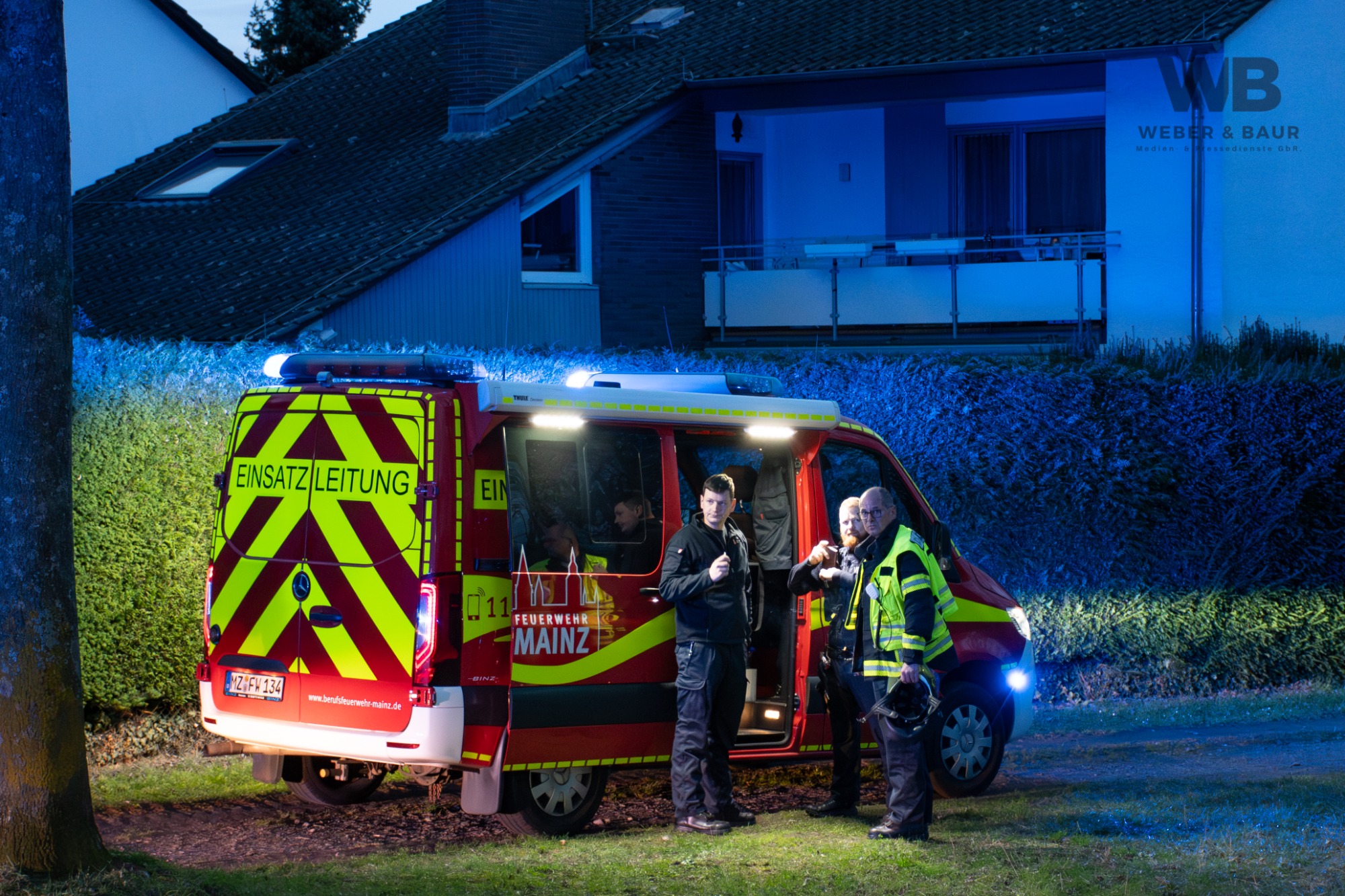 Daraufhin wurden umgehend Kräfte der Berufsfeuerwehr Mainz von beiden Wachen sowie Einheiten des Rettungsdienstes alarmiert. Beim Eintreffen der ersten Einsatzkräfte stand eine Wohnung im Erdgeschoss bereits in Vollbrand. Zudem drang aus mehreren Bereichen des Gebäudes dichter, schwarzer Rauch. Einige Bewohnerinnen und Bewohner befanden sich bereits im Freien, allerdings war zunächst unklar, ob sich noch weitere Personen im Gebäude aufhielten.