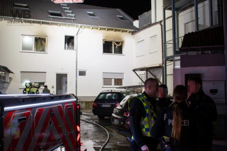 Parallel dazu drangen mehrere Trupps unter Atemschutz mit Strahlrohren in das Gebäude vor, um das Feuer zu bekämpfen und nach weiteren vermissten Personen zu suchen. Glücklicherweise wurden keine weiteren Personen im Gebäude angetroffen. Der Brand im ersten Obergeschoss konnte nach kurzer Zeit unter Kontrolle gebracht und gelöscht werden. Im Anschluss waren umfangreiche Belüftungsmaßnahmen erforderlich, um das Gebäude vom Brandrauch zu befreien. Die betroffene Wohnung ist derzeit unbewohnbar.
