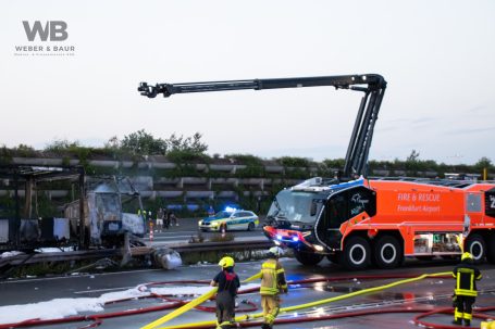 Gleich zwei Lkw-Brände haben am Samstag den Verkehr in Hessen erheblich beeinträchtigt. Besonders dramatisch war der Unfall auf der A3 direkt am Frankfurter Flughafen. Ein Lastwagen durchbrach die Mittelleitplanke, streifte ein Auto und geriet bei der Bergung in Vollbrand. Auslaufender Diesel entzündete sich, meterhohe Flammen schlugen in den Himmel. Die Hitzeentwicklung war so stark, dass die Flughafenfeuerwehr mit einem Flugfeldlöschfahrzeug ausrücken musste. Mehrere Wehren aus Frankfurt, Kelsterbach und Raunheim kämpften stundenlang gegen das Feuer. Zeitweise musste die A3 in beide Richtungen voll gesperrt werden, Flugzeuge wurden wegen der Rauchwolke auf andere Landebahnen umgeleitet.
