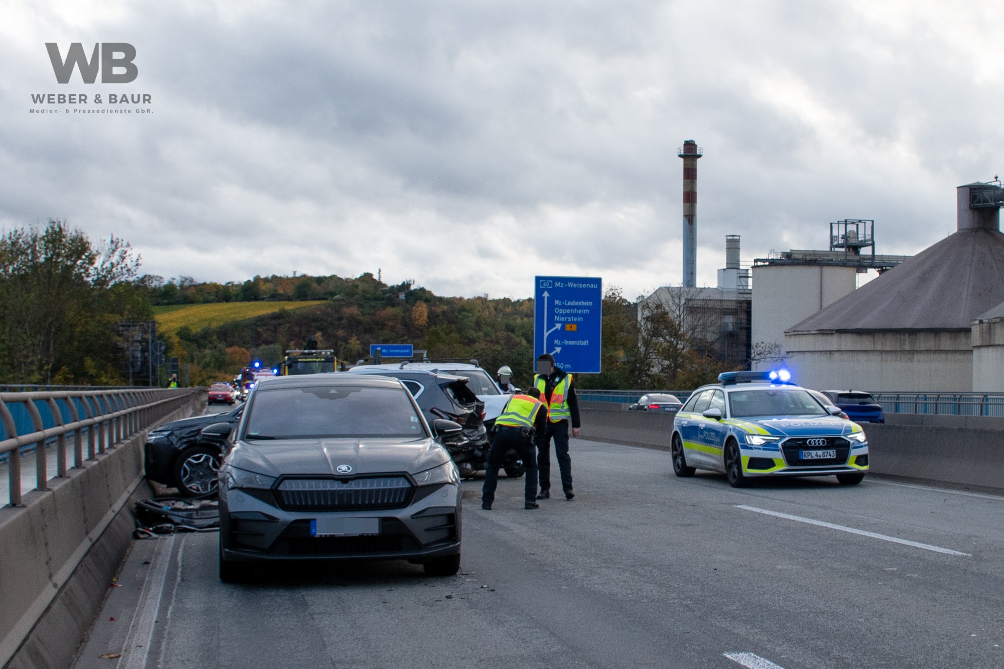 Am späten Donnerstagnachmittag kam es auf der A60 in Fahrtrichtung Darmstadt kurz hinter der Anschlussstelle Mainz-Laubenheim zu einem schweren Verkehrsunfall mit mehreren beteiligten Fahrzeugen. Gegen 17 Uhr wurde die Feuerwehr Mainz über den Unfall informiert. Aufgrund der ersten Meldungen war zunächst von mehreren Verletzten auszugehen, weshalb ein Großaufgebot an Rettungskräften zur Einsatzstelle ausrückte.