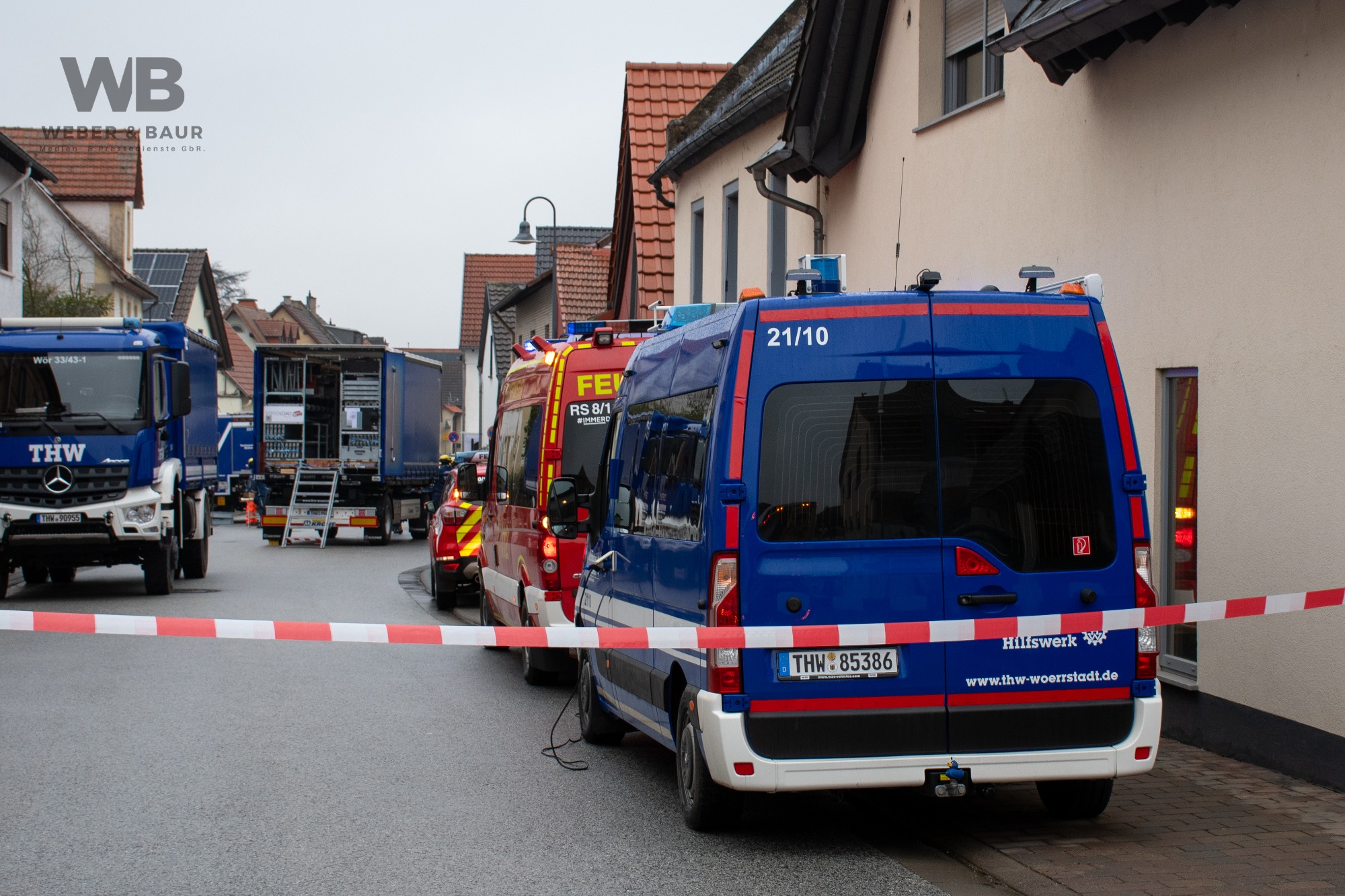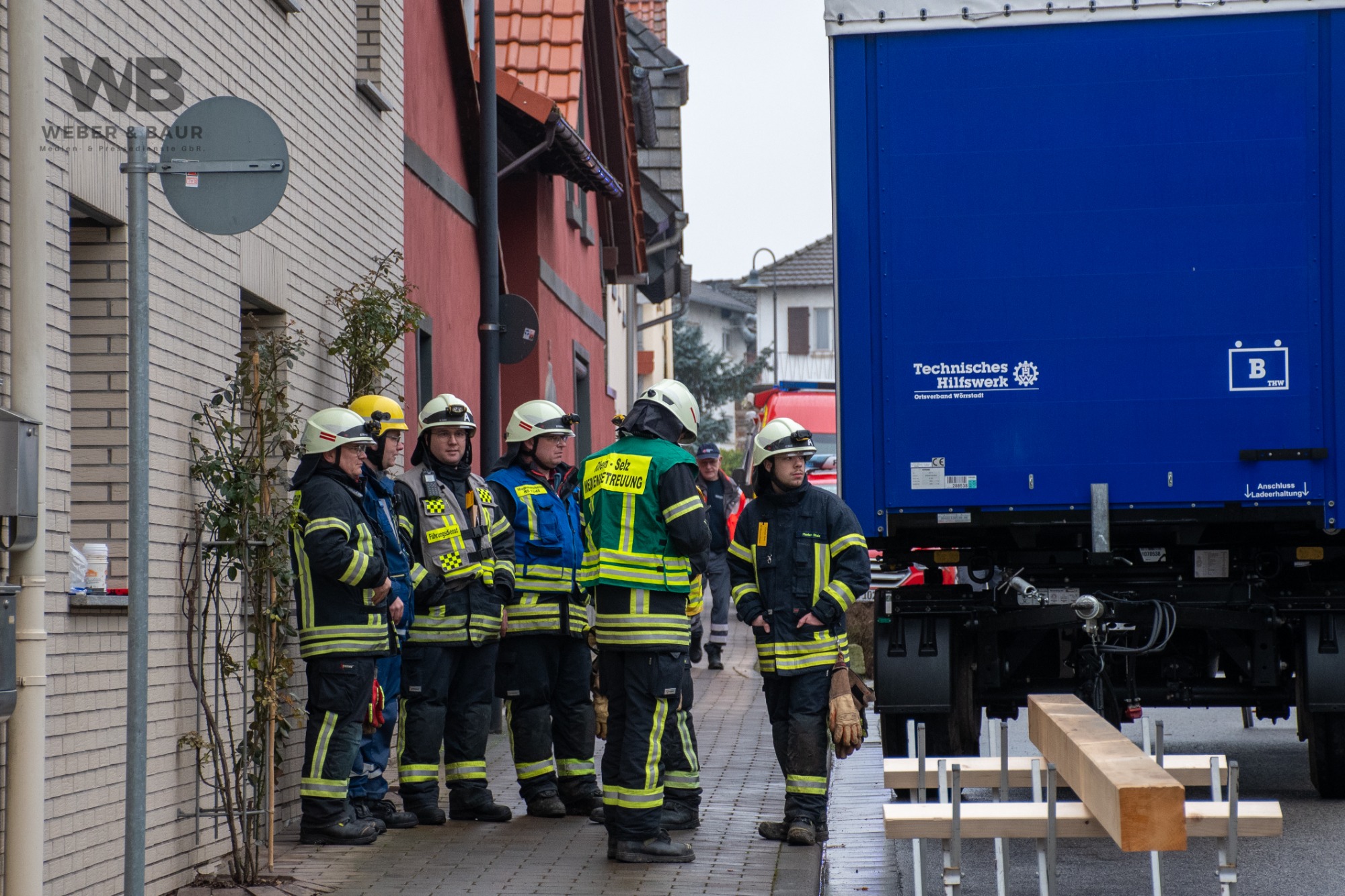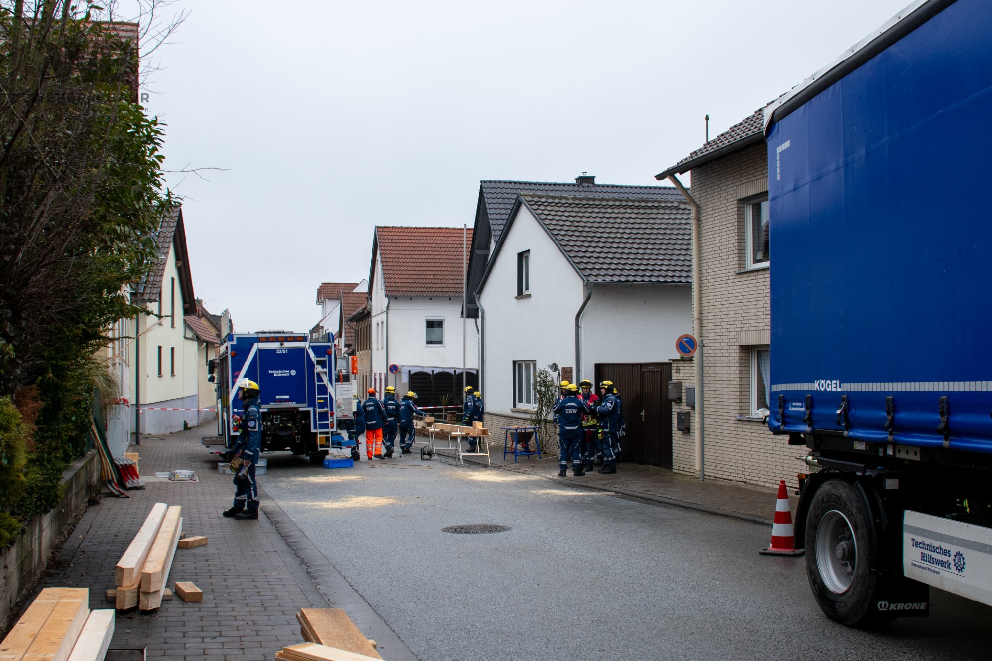Zur Beurteilung der Gebäudestatik forderte die Feuerwehr einen Baufachberater des THW nach. Feuerwehr und THW sichern das betroffene Gebäude derzeit gemeinsam ab, um weitere Gefahren auszuschließen.