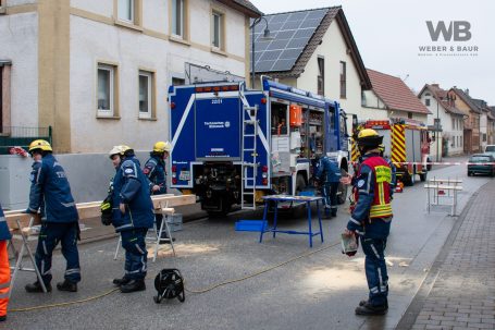 Die Gaustraße, welche als Hauptstraße durch den Ort verläuft, musste aufgrund der laufenden Einsatzmaßnahmen vollständig gesperrt werden. Die Vollsperrung wird nach aktuellen Einschätzungen voraussichtlich bis etwa 19:00 Uhr andauern.